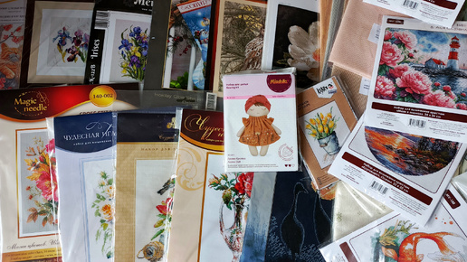 Покупки на распродаже, много новых наборов для вышивки.