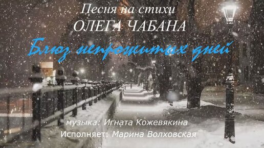 Марина Волховская – Блюз непрожитых дней (стихи Олега Чабана, муз. Игната Кожевякина)
