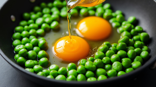 Не просто омлет, а "Пицца-завтрак" на сковороде. Горошек, колбаса и много сыра