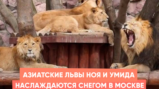 Азиатские львы Ноя и Умида наслаждаются снегом в Москве