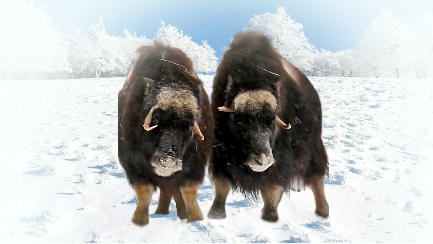 Две молодые самочки овцебыков веселыми танцами встречают новый год.