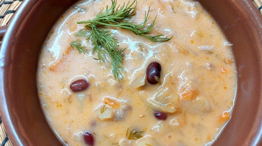 Суп капустный с фасолью и сыром. Суп с гладкой кремовой текстурой.