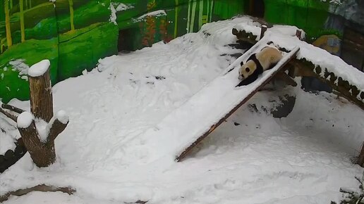 Панда катается с горки
