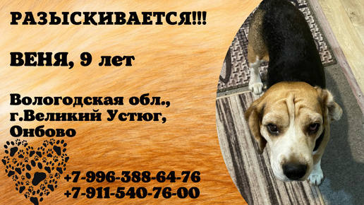 Пропала собака! ВЕНЯ, 9 лет. Вологодская обл., г.Великий Устюг, Онбово.