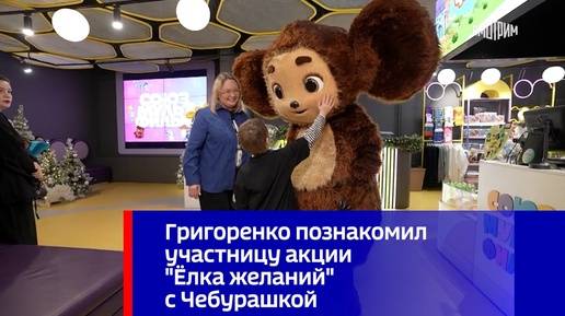 Григоренко познакомил участницу акции "Ёлка желаний" с Чебурашкой