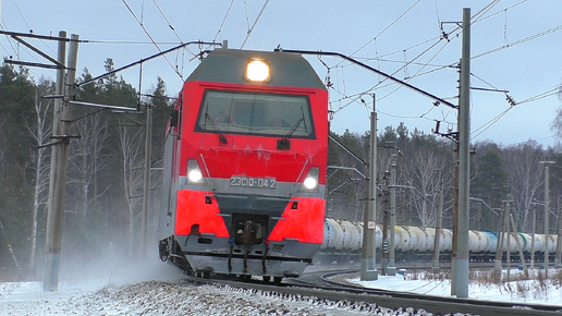 "Цистерны покрылись инеем". 2ЭС10-042 "Гранит" с грузовым поездом
