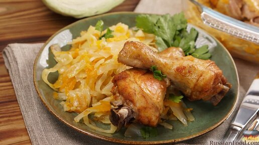 Второе блюдо с гарниром без хлопот. Курица с капустой (в духовке)