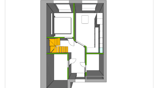 Лестница и план двухуровневой квартиры с террасой. Финальный вариант.