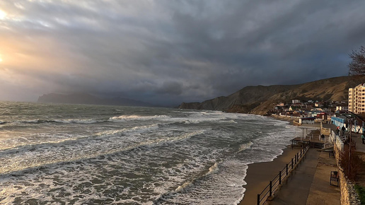 Крым НАКРЫЛ зимний шторм! Обстановка на пляжах в поселке Орджоникидзе! Невероятные пейзажи на закате дня. Кара-Даг, Джан-Кутаран.