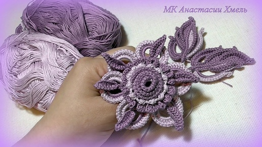 МК Цветок обвязка шнуром Ирландское кружево