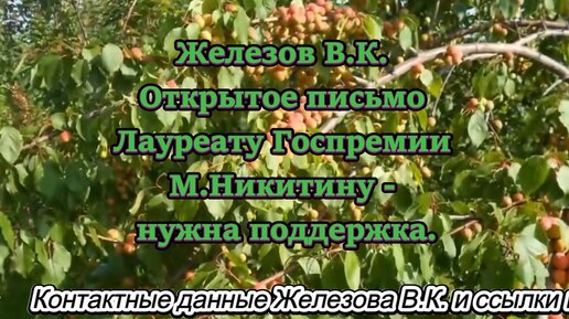Железов В.К. Открытое письмо Лауреату Госпремии М.Никитину - нужна поддержка.
