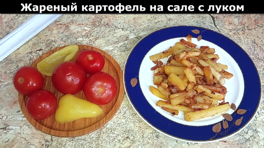 Рецепт вкусного ужина. Жаренный картофель на сале с луком.