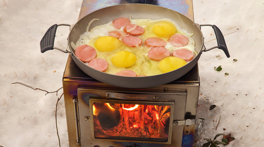 ЗИМОЙ ЖАРИМ ЯИЧНИЦУ в ЧУМЕ с ПЕЧКОЙ. Палатка для печки. Китайская титановая печка. Кайфуем.