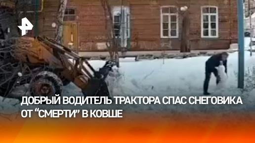 Милые кадры из Оренбурга: заботливый тракторист спас снеговика от своего же ковша