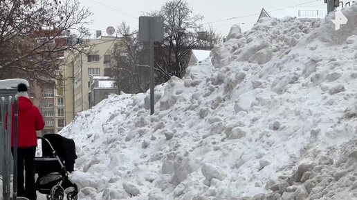 Снежная "миусская дюна" высотой в два этажа в очередной раз выросла в самом центре Москвы у "Белорусской", полностью перекрыв собой улицу