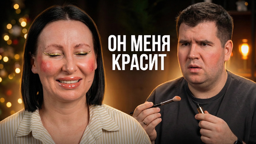 Новогодний макияж ВСЛЕПУЮ 🎄 Муж красит — я командую