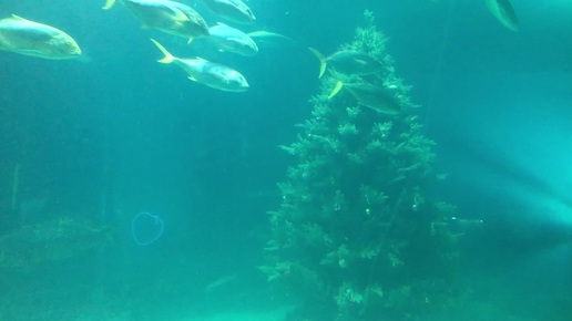 Подводное царство с ёлкой и акулами в Москвариуме