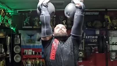 Гири 60 + 60 кг., на 6 раз. Давид Шамей, жим в солдатской стойке #kettlebell #sports