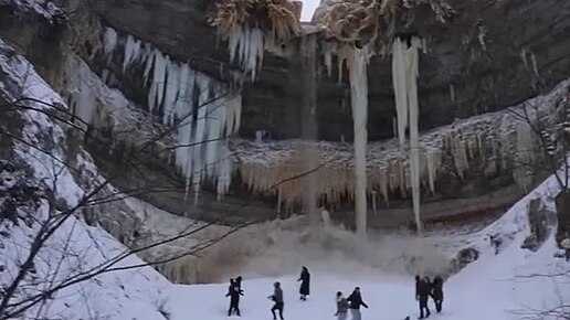 Замерзший водопад обрушился на туристов