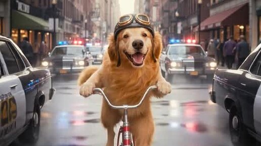 Пес катит на лесике в сопровождении "фараонов"