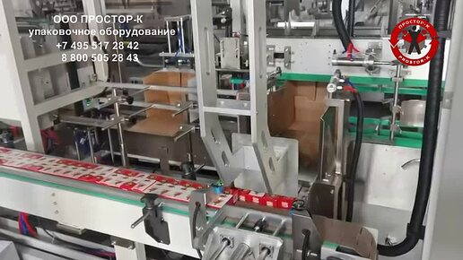 Вторичная упаковка коробок с продукцией в транспортный короб на оборудовании от компании ПРОСТОР-К