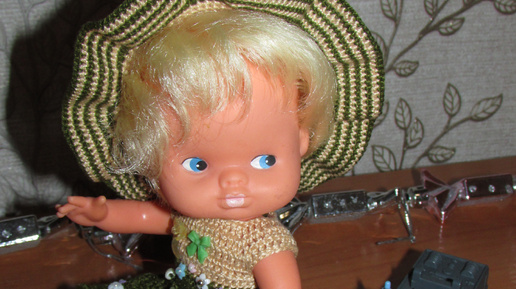 Авторский вязаный наряд\комплект с шляпой "Цветочная Фея-2" на кукол ГДР Кисс Ми \ Kiss Me