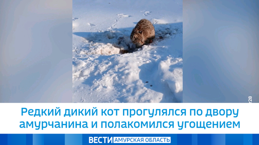 Редкий дикий кот прогулялся по двору амурчанина и полакомился угощением