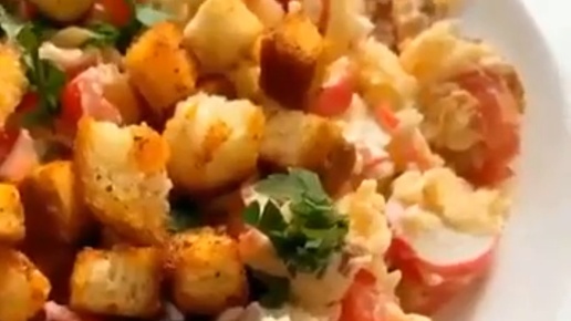 Салатик с крабовыми палочками и гренками🥗