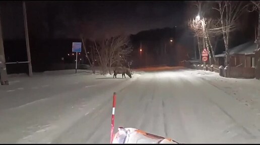 Таежный наблюдатель: на обочине заснеженной дороги замечен марал