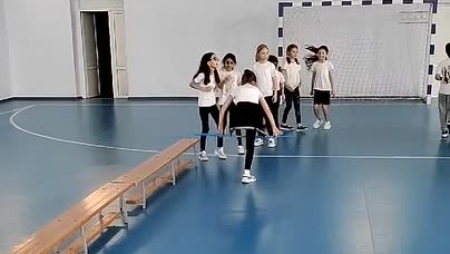 Эстафета с использованием гимнастической палки и гимнастической скамейки.