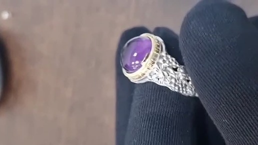 Мужское кольцо с природным аметистом, молитвой и виноградной лозой. Чернёное серебро и золочение. Сила, вера, выбор.