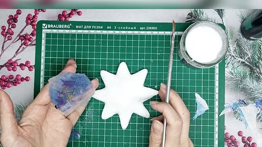 Рождественская звезда из ваты. Часть 2, декупаж на вате