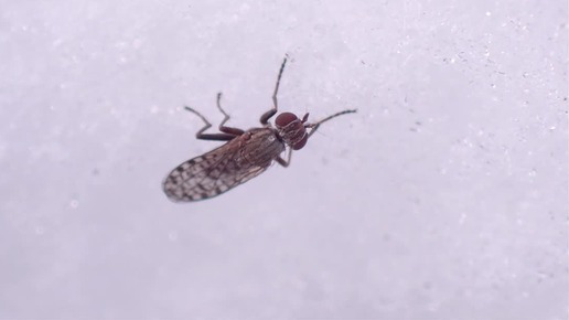Активная муха Pherbellia schoenherri на снегу при минус 10.