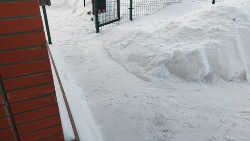Очистила парковку возле гаража. Снежок приятно скрипит.