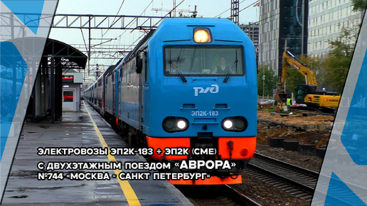 Электровозы ЭП2К-183 + ЭП2К (СМЕ) со скорым двухэтажным поездом (Аврора) №744 "Москва - СПб"