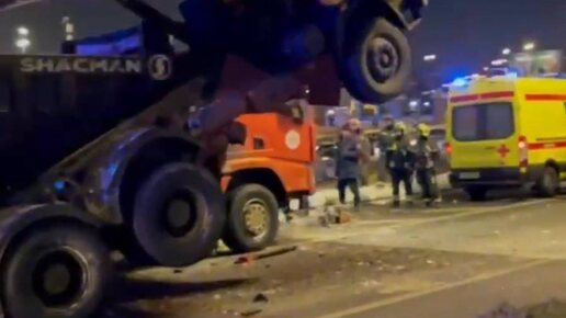 2026-01-17. РФ, Москва. Грузовик столкнулся с пешеходным мостом в столице России.