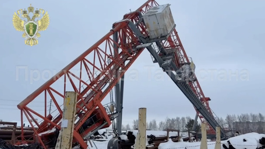 Момент обрушения крана, из которого выпала 63-летняя крановщица и выжила