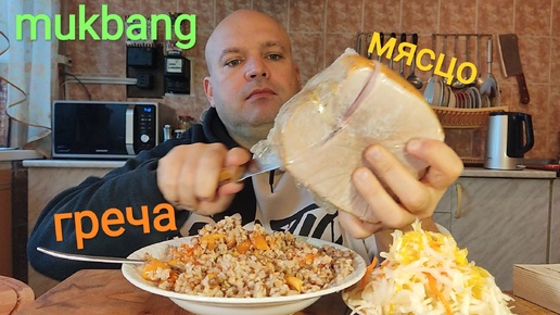 МУКБАНГ ГРЕЧКА с грибами и мясо свинины/ОБЖОР/еда на камеру/жрать хочу