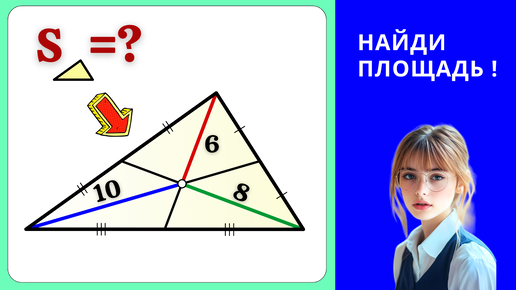 КЛАССИКА ГЕОМЕТРИИ! По большим частям медиан найти S треугольника.