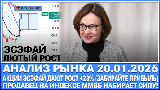 Анализ рынка 20.01 / БЕШЕННЫЙ РОСТ АКЦИЙ ЭСЭФАЙ +23% СО ВХОДА!!! Продавец на Ммвб набирает силу!