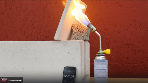 Горит ли газобетон? Поджигаем блок газовой горелкой в течение 5 минут!