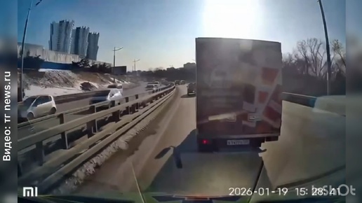 Во Владивостоке автохам на грузовике подрезал скорую помощь, которая везла пациентку с переломом позвоночника!
