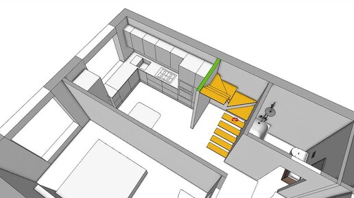 В двухуровневой квартире с террасой появились новые планировки. Доступ на второй этаж осуществляется через лестницу, ведущую от кухни.