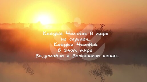 Каждый Человек в мире не случаен... Каждый Человек в этом мире безусловно и бесконечно ценен...