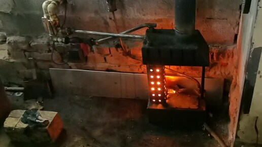 Буржуйка на отработке с капельной подачей