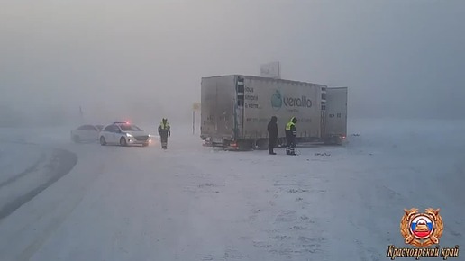 Фура с 30 коровами в мороз увязла в снегу на трассе в крае