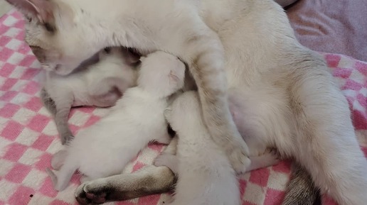Синистра со своими котятами, детки растут и скоро откроют глазки