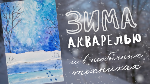 Нарисуем зимний пейзаж акварелью в необычной технике