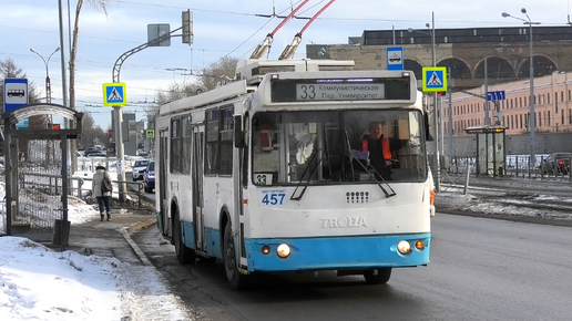 Троллейбус Екатеринбурга ЗиУ-682Г-016.02 борт. №457 маршрут 33 на остановке "улица Фронтовых бригад"