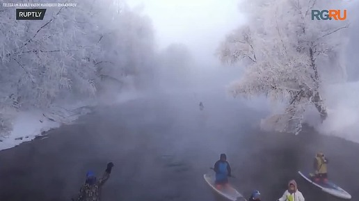 Заплыв по зимней Оби на сапах